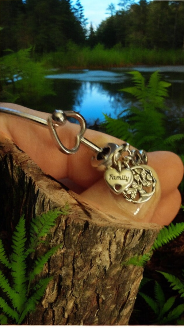✨ Heart Charm – Engraved with the word "Family", this charm represents the love and connection shared with those closest to your heart.